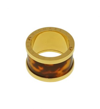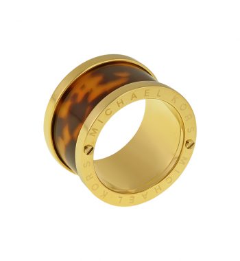 Michael Kors Gold-tone stainless steel barrel ring with a tortoise-acetate center. Brand name detail along edge. Size: 6.